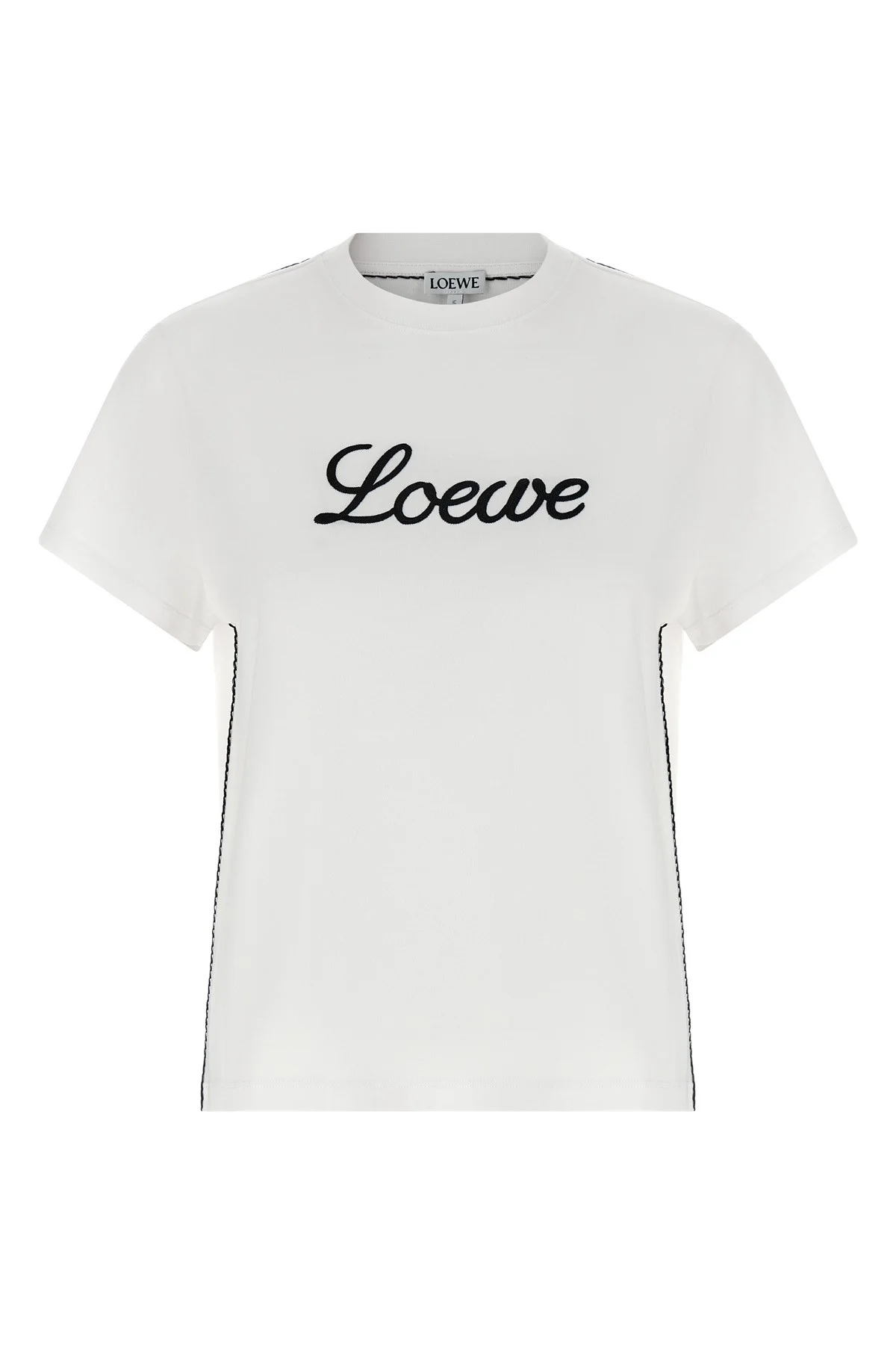 cod. S359Y22XAC2100 Light cotton T-shirt with contrasting chain stitch embroidery, front logo embroidery, crew neck, short sleeves with dropped shoulders. Color: White Size & Fit: Relaxed fit Composition: 97% cotton 3% polyester Made in: Portugal PROMO CODE NOT APPLICABLE