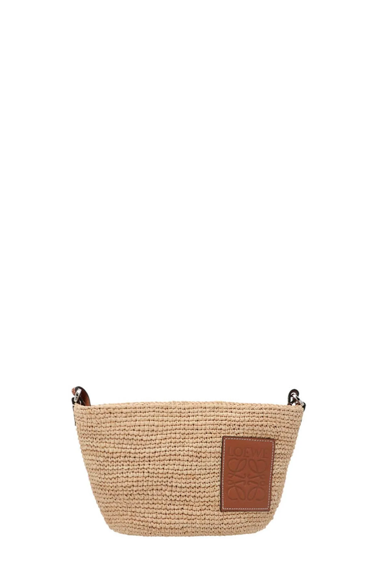cod. 32824W102435 Loewe raffia clutch bag with a removable leather shoulder strap and a leather patch with embossed logo. Color: Beige Size & Fit: W 28 x H 15.5 x D 9 cm Composition: 100% raffia Made in: Madagascar PROMO CODE NOT APPLICABLE