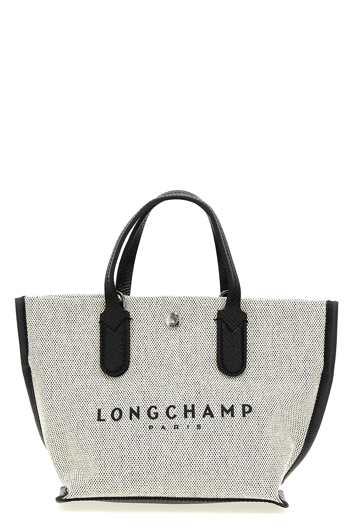 cod. 10259HSG037 'Essential XS' handbag made of dotted cotton canvas, front and back logo print, double leather handles, button closure, leather base and piping, adjustable and removable shoulder strap. Color: Black Size & Fit: W 19 x H 18 x D 8 cm Made in: China