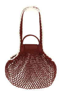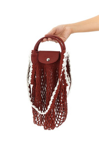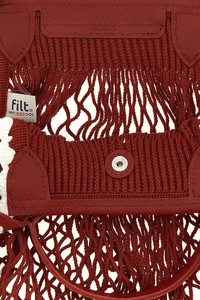 cod. 10121HGW213 'L Le Pliage Filet' cotton mesh shoulder bag with crochet trim handmade by the NGO ANAKA in Madagascar, Russian leather flap with snap button closure and embossed logo, double short leather and long cotton handles. In collaboration with FILT, the French brand that makes mesh shopping bags. Color: Red Size & Fit: W 38 (bag base) x H 31 cm Composition: 100% cotton Made in: France