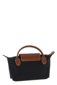 cod. 34175089001 'Le Pliage Original' foldable nylon canvas clutch bag, top zip closure, fixed leather handle, leather flap with snap button closure and embossed logo. SUSTAINABLE: Product made with recycled polyamide. Color: Black Size & Fit: W 17 x H 11 x D 5.5 cm Composition: 100% polyamide Made in: France