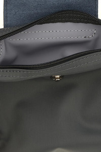 cod. 34175919P66 'Le Pliage Original' foldable nylon canvas clutch bag, top zip closure, fixed leather handle, leather flap with snap button closure and embossed logo. SUSTAINABLE: Product made with recycled polyamide. Color: Gray Size & Fit: W 17 x H 11 x D 5.5 cm Composition: 100% polyamide Made in: China