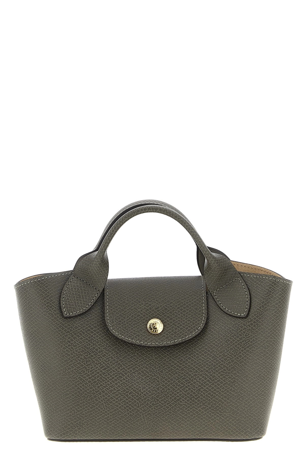 cod. 10319HYZP55 'XS Epure' fine-grained Russian cowhide leather shopping bag, flap closure with snap button and front embossed logo, double fixed handle, adjustable and removable shoulder strap. The leather of Longchamp bags may have small variations due to the nature of the raw material used in our laboratories. These variations are synonymous with authenticity and exceptional quality. Color: Gray Size & Fit: W 19 (bag base) x H 15 x D 7.5 cm Composition: 100% cow leather (Bos Taurus) Made in: France