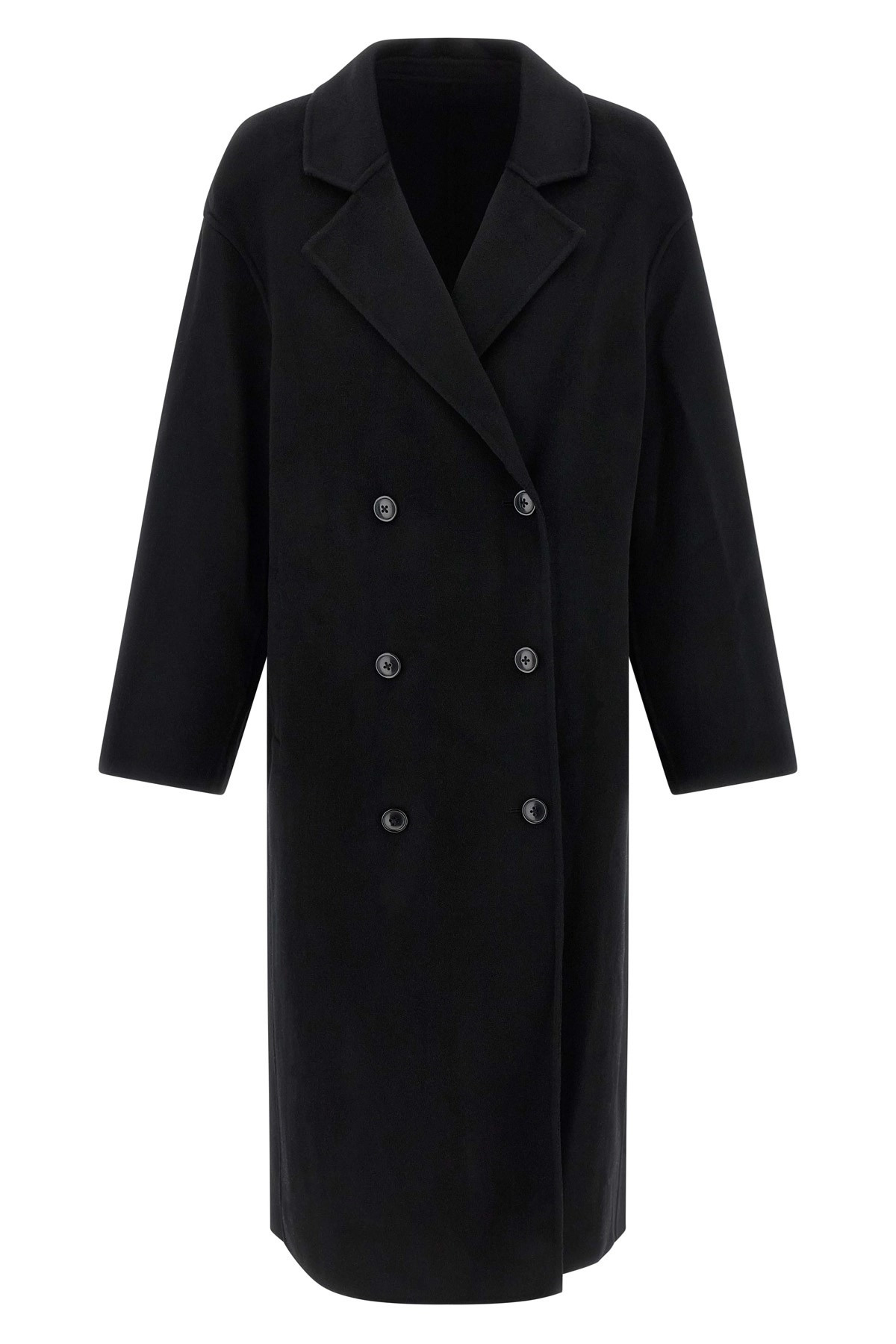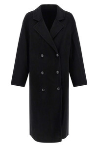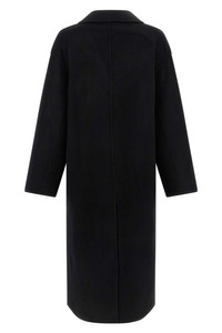 cod. BORNEOLDSBLACK 'Borneo' double-breasted coat in wool and cashmere draping with front button closure, mirror lapels, pockets, long sleeves with dropped shoulders, back split, unlined. Color: Black Size & Fit: oversize fit - FRENCH size Composition: 90% wool, 10% cashmere Made in: China