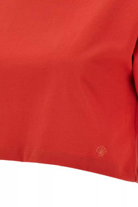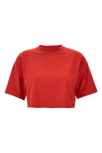 cod. GUPOTOMATO 'Gupo' cotton cropped t-shirt with tone-on-tone front logo embroidery, crew neck, short sleeves with dropped shoulders. SUSTAINABLE: OEKO-TEX® product. Color: Red Size & Fit: Comfort fit Composition: 100% cotton Made in: Portugal