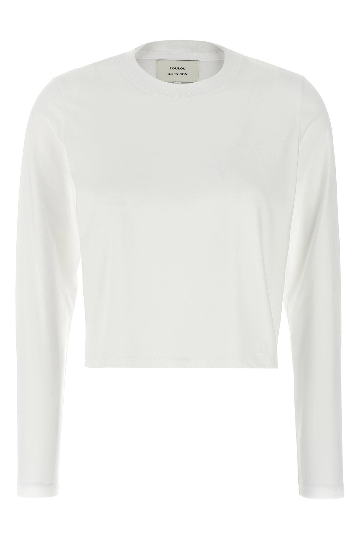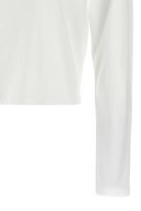 cod. MASALLDSWHITE Supima cotton 'Masal' T-shirt with tone-on-tone logo embroidery on the front, crop model, crew neck, long sleeves. Color: White Size & Fit: true to size fit Composition: 100% supima cotton Made in: Portugal
