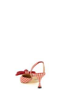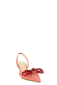 cod. SS26S113365VICRED 'Double Bow' slingbacks in Vichy print fabric, tapered toe with bow detail with crystals on the front, elastic strap, stiletto heel, leather sole. Color: Red Size & Fit: EU WOMAN - Heels: 6,5 cm Composition: 100% Vichy Made in: Italy