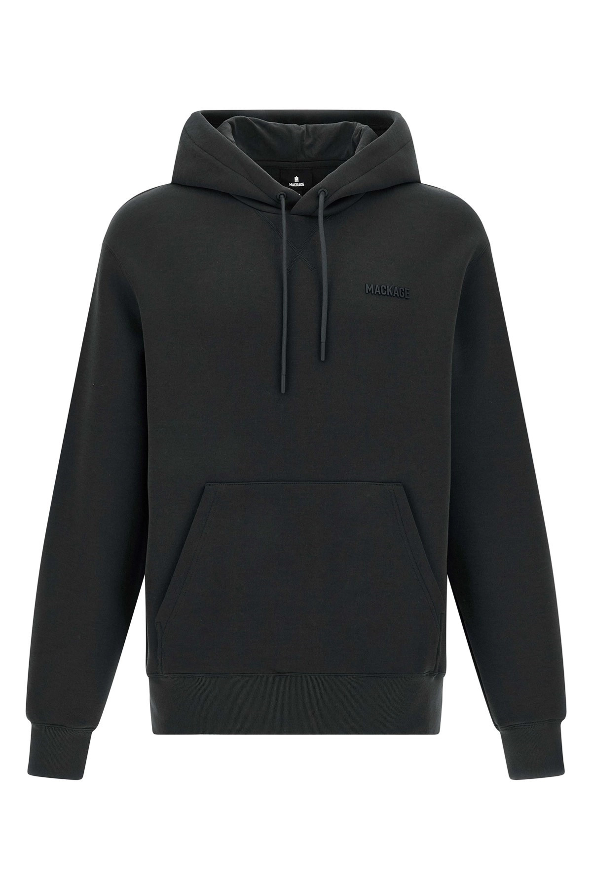 cod. KRYSTIANC0001 'Krystian' cotton blend hoodie with tone-on-tone silicone lettering logo on the front, kangaroo pocket, long cuffed sleeves. Color: Black Size & Fit: true to size fit Composition: 53% COTTON, 47% POLYESTER Made in: Vietnam