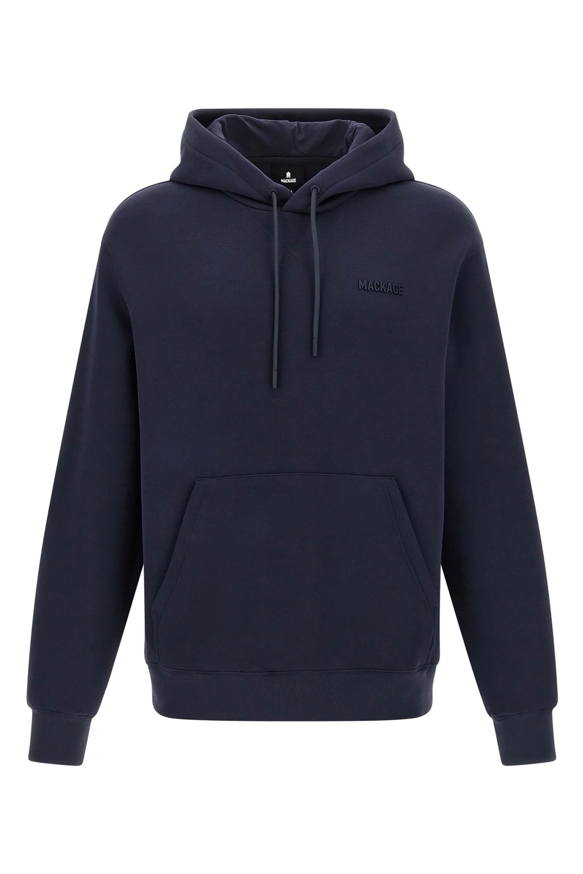 cod. KRYSTIANC0403 'Krystian' cotton blend hoodie with tone-on-tone silicone lettering logo on the front, kangaroo pocket, long cuffed sleeves. Color: Blue Size & Fit: true to size fit Composition: 53% COTTON, 47% POLYESTER Made in: Vietnam