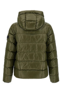 cod. VICTORRC0339 'Victor-R' quilted and padded shiny nylon down jacket, adjustable hood, front zip closure, high neck, pockets, long sleeves with windproof cuffs and silicone logo patch, drawstring at the hem. SUSTAINABLE: This product is made with recycled nylon. Color: Green Size & Fit: true to size fit - US/UK sizing Composition: 100% nylon Made in: Vietnam