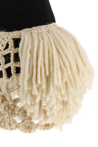 cod. 227925BLACK '01' mini dress in stretch viscose, bodysuit style with snap buttons at the bottom, high neck, rear zip closure, dramatic crocheted wool skirt with exaggerated fringes and open weave details that create volume and movement. Color: White/Black Size & Fit: true to size fit - FRENCH size Composition: 78% viscose 16% polyamide 6% elastane Made in: Poland