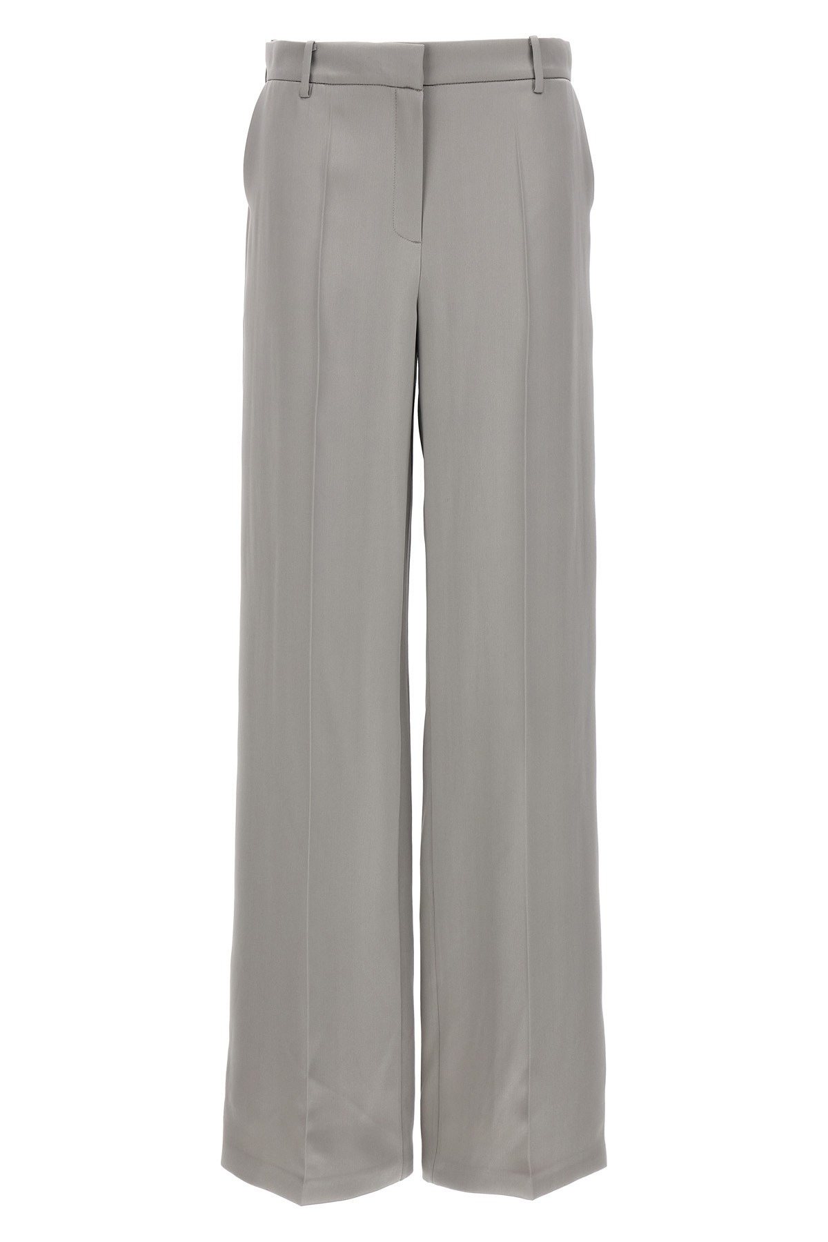 cod. 211723GREY '02' satin pants, hook and button zip closure, pockets, straight leg with central crease. Color: Gray Size & Fit: true to size fit French size Composition: 96% wv, 4% ea Made in: Poland