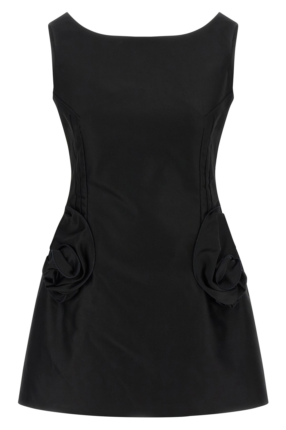 cod. 127725BLACK '04' cotton mini dress, pockets with 3D floral decoration, square neckline, sleeveless, pince, back zip closure, silk lining. Color: Black Size & Fit: true to size fit - FRENCH size Composition: 100% cotton Made in: Poland