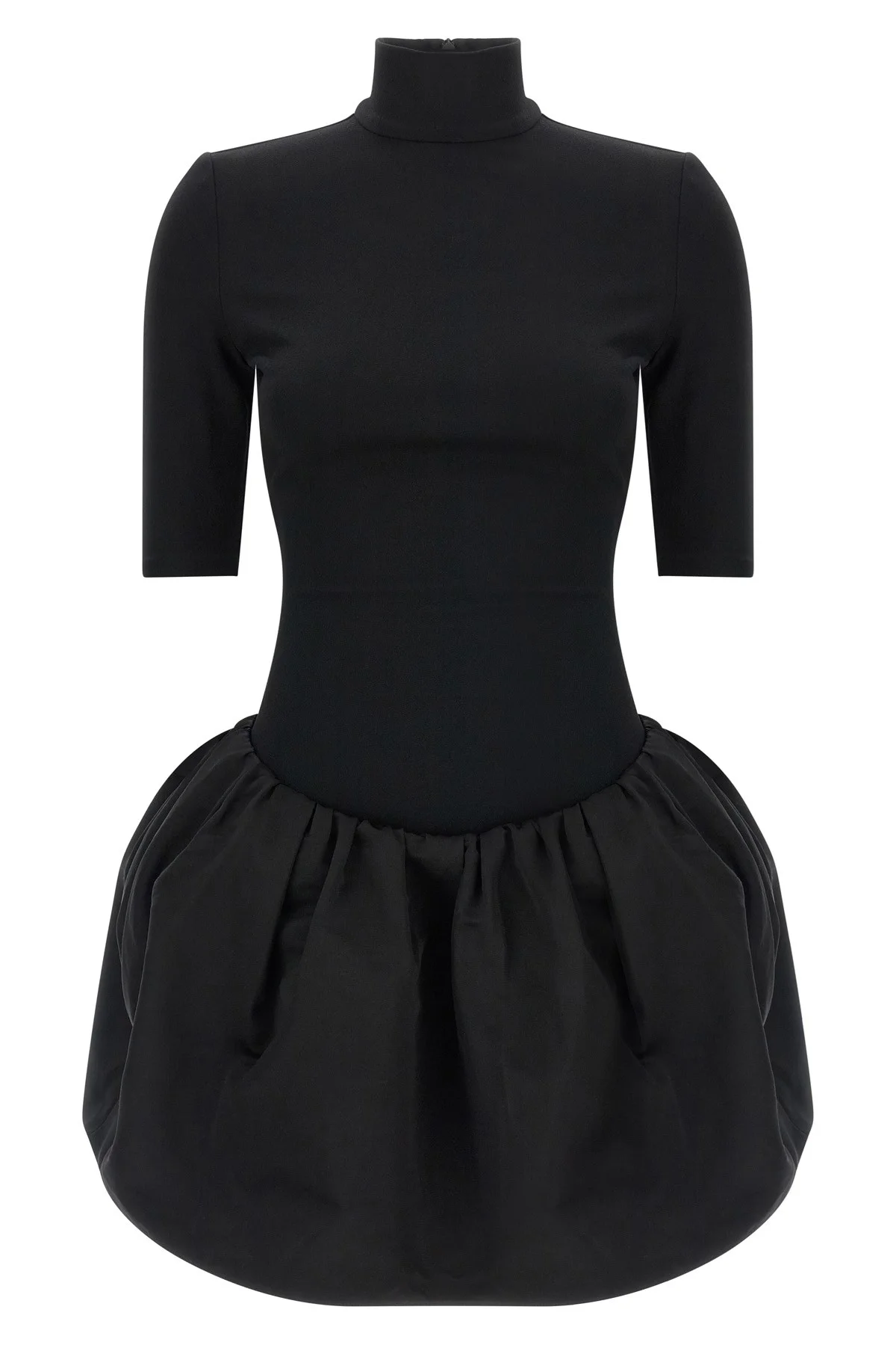cod. 208925BLACK Mini '08' dress in cotton and viscose blend, high neck, back zip and button closure, 3/4 sleeves, silk balloon skirt with tulle inner support. Color: Black Size & Fit: true to size fit - FRENCH size Composition: 51% cotton, 49% silk Made in: Poland