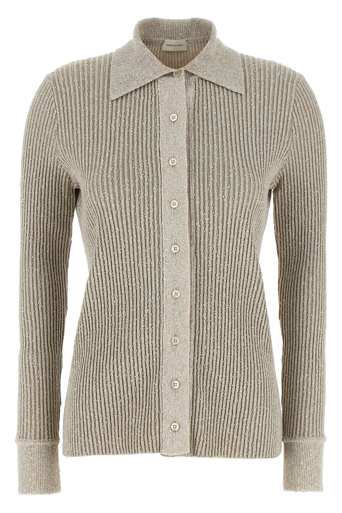 cod. 321725GREY '21' ribbed viscose knit cardigan with 3D decorations, polo shirt with collar and front button closure, long cuffed sleeves. Color: Gray Size & Fit: true to size fit - FRENCH size Composition: 67% viscose, 33% polyester Made in: Poland