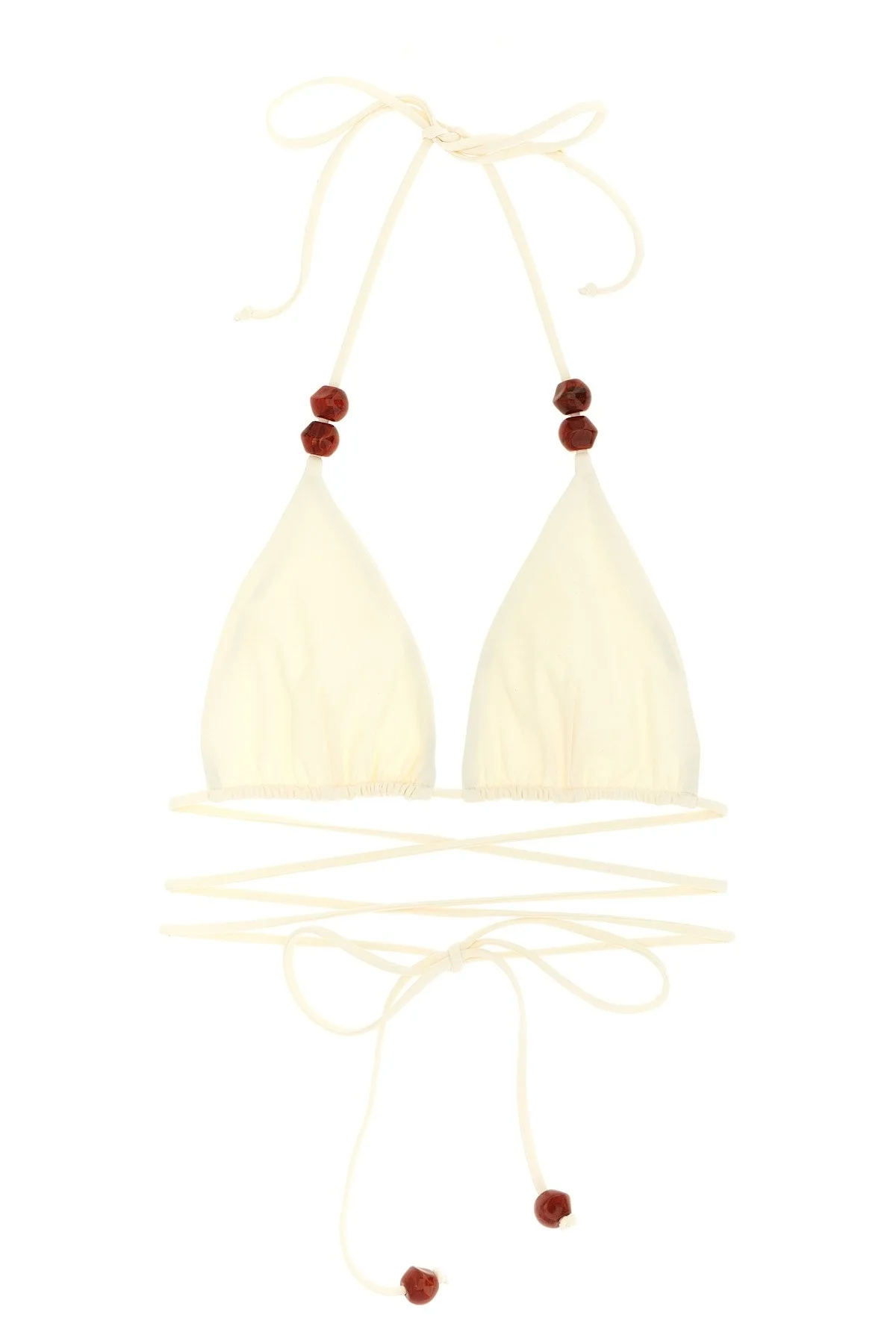 cod. 628426CREAM Triangle bikini top RE 26 with adjustable lacing and beaded details. Color: White Size & Fit: True to size fit French sizing Composition: 75% polyamide, 25% elastane Made in: Poland
