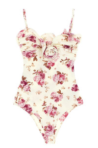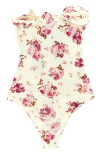 cod. 607426CREAM One-piece swimsuit 'RE26 floral print, model with adjustable and removable straps, ruffles and floral application, neckline modeled with underwire. Color: Multicolor Size & Fit: True to size fit French sizing Composition: 86% polyamide, 14% elastane Made in: Poland