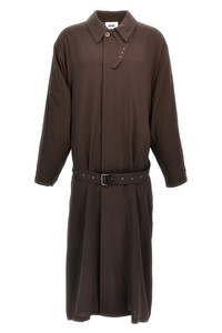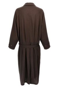 cod. T8800492216 'La Sapienza' light cotton coat with antique finish, under the throat, button closure, pockets, adjustable and removable belt, back vent. Color: Brown Size & Fit: oversized fit Composition: 100% cotton Made in: Italy