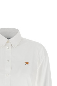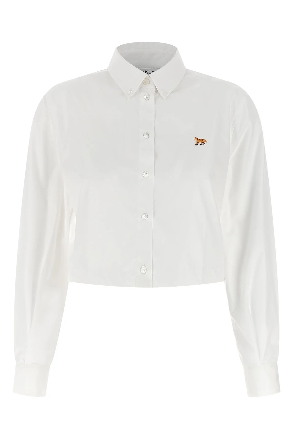 cod. QW00402WC0026P100 Cotton poplin shirt with button-down crop style, flared silhouette, 'Baby Fox' patch and mother-of-pearl button closure on the front, long cuffed sleeves. Color: White Size & Fit: true to size fit - FRENCH size Composition: 100% cotton Made in: Morocco