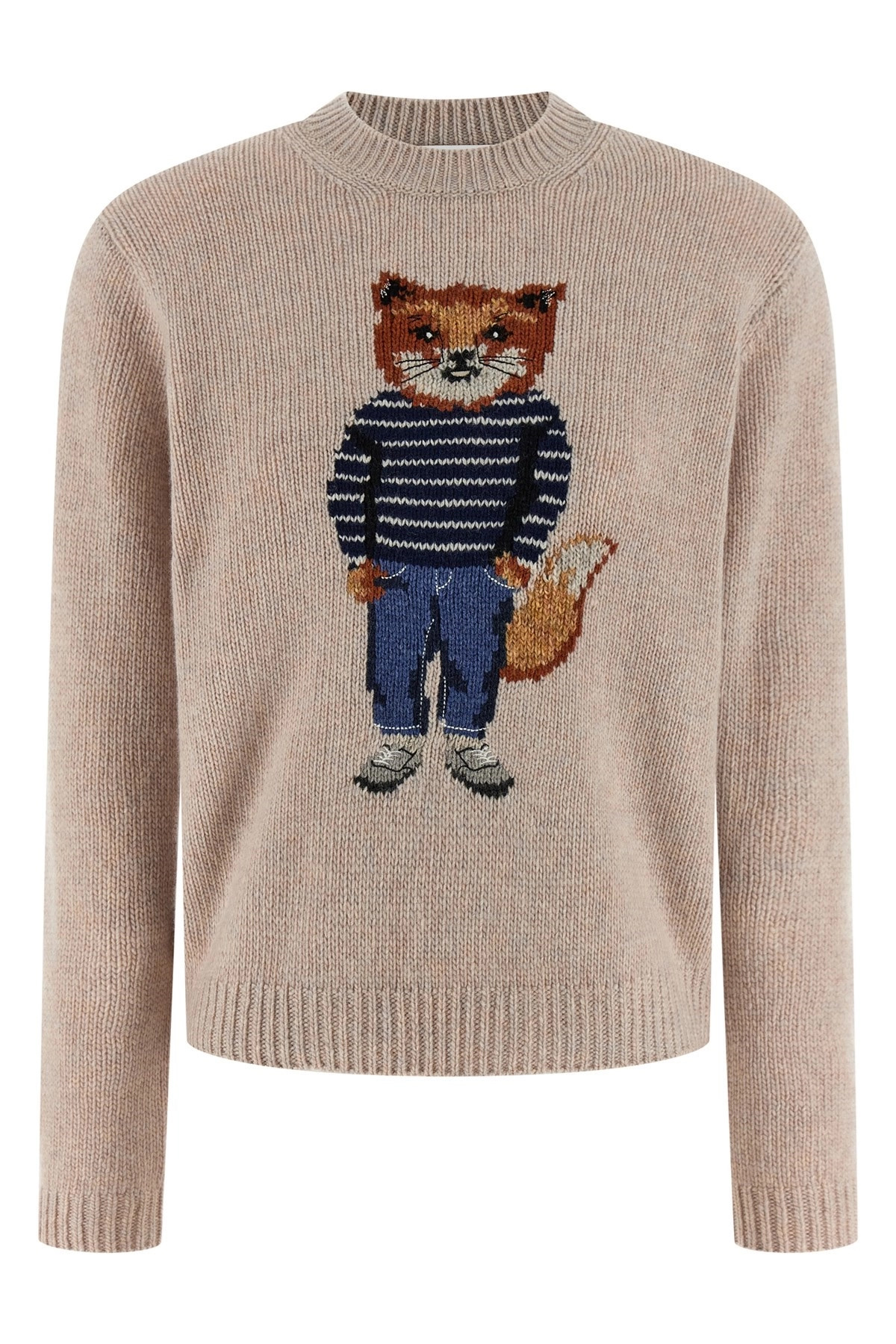 cod. PW00812KH00020382 Wool and mohair sweater with front 'Dressed Fox' intarsia, crew neck, long cuffed sleeves. Color: Beige Size & Fit: true to size fit Composition: 97% wo, 2% pa, 1% pu Made in: China