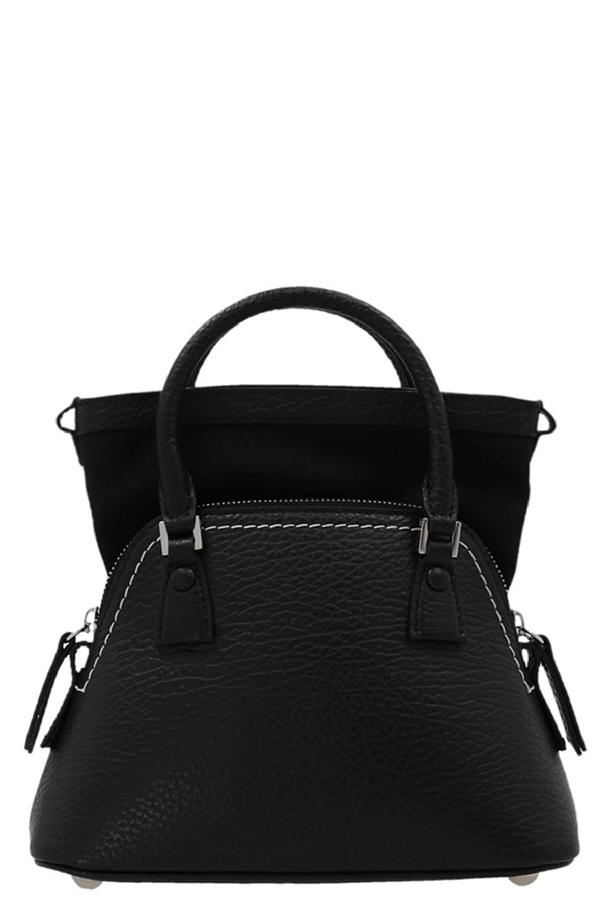 cod. S56WG0081P4455T8013 '5AC Classique Micro' hammered leather handbag with top handles, removable chain shoulder strap, front logo label, zip closure. Color: Black Size & Fit: W 22 x H 15 x D 10 cm Composition: 100% polyvinyl butyral