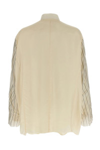 cod. S50BN0532MTN051961 'Anonymity of the lining' light jacket in bi-material mohair blend with classic collar, front button closure, raw cut edging, welt pockets, contrast long sleeves. Color: Beige Size & Fit: True to size fit Composition: 60% mohair 40% virgin wool Made in: Italy