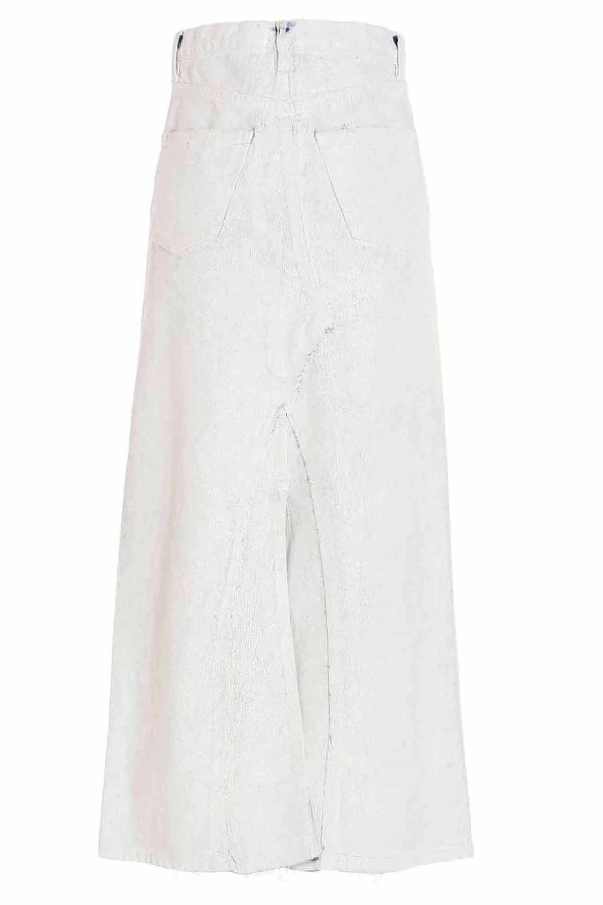 cod. SI0MA0003S30561967 'Bianchetto’ denim cotton skirt covered in white paint with a button closure and five pockets. This model is made from a material sourced through an artisanal production process that makes it a one-of-a-kind piece. Differences in appearance between one garment and another are absolutely natural. Color: White Size & Fit: True to size fit Composition: 100% cotton