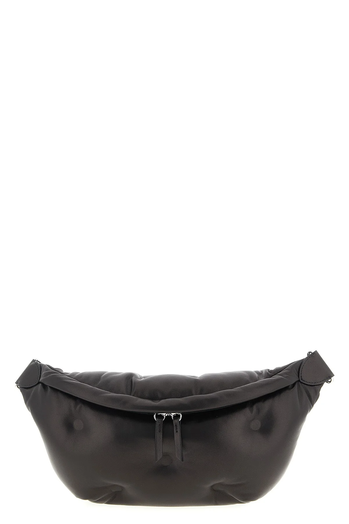 cod. S35WB0079P8840T8013 'Glam Slam' belt bag in padded and quilted matelasse effect nappa leather, zip closure, top 'Four Stitches', back zip pocket, adjustable tape shoulder strap with tuc closure. Color: Black Size & Fit: W 35 x H 16 x D 12 cm Composition: 100% sheepskin leather (Ovis Aries) Made in: Italy