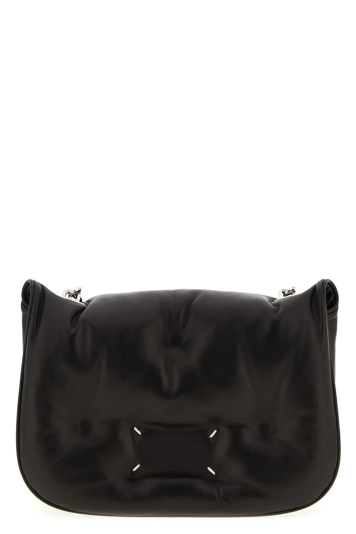 cod. SB1WG0019P8840T8013 'Glam Slam Flap' quilted nappa leather shoulder bag with flap and snap buttons, front 'four stiches' and inner logo label, chain and adjustable shoulder strap with leather handle. Color: Black Size & Fit: H 15.5 x W 9 x W 21.5 cm Composition: 100% sheepskin leather (Ovis Aries) Made in: Italy