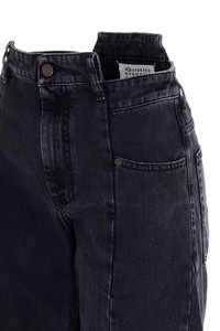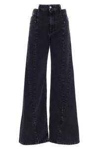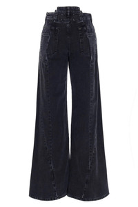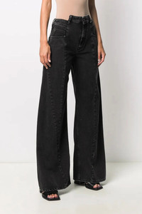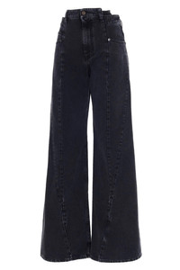 cod. S51LA0133S30496961 Cotton denim jeans with asymmetric waist and seams, front and back darts, wide leg, zipper and button closure, pockets. Color: Black Size & Fit: fit true to size Composition: 100% cotton Made in: Italy