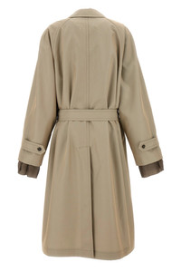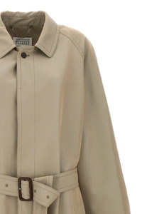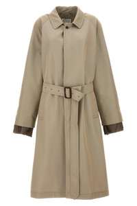 cod. S50AH0132S54694801 Long single-breasted cotton blend trench coat with button closure, belt at the waist, pockets, long sleeves with unfinished visible lining, and back split. Color: Beige Size & Fit: true to size fit Composition: 65% cotton, 35% polyester Made in: Italy