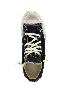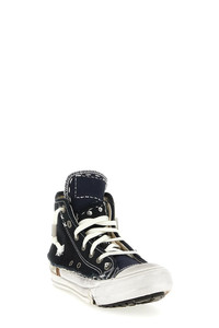 cod. S39WS0129P7454HB130 'Love to Death' cotton canvas sneakers, unstructured construction with used and distressed details, contrast stitching, lace-up closure, metal details, 'Numeric signature MM6' inside the tongue, rubber sole. Color: Blue Size & Fit: EU WOMEN Composition: 100% cotton Made in: Vietnam