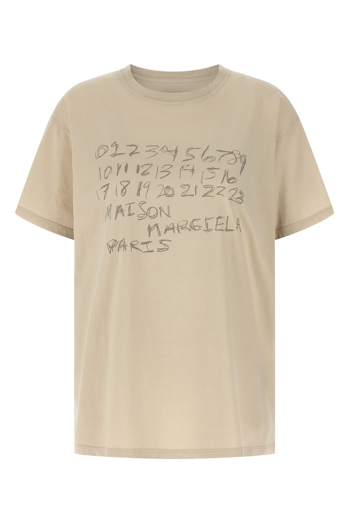 cod. S51GC0544S24575119 Cotton, crewneck t-shirt with front logo print and short sleeves. Color: Beige Size & Fit: True to size fit Composition: 100% cotton Made in: Italy