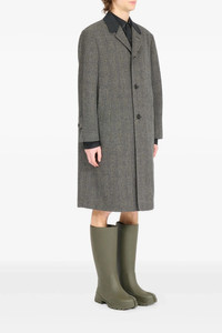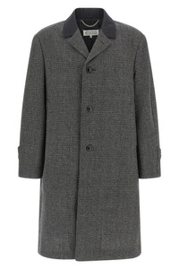 cod. S50AA0159M35485001F Houndstooth virgin wool coat with contrast collar, single-breasted style with front button closure, pockets, structured shoulder strap, long sleeves, viscose rayon lining, 'Four stitches' at the back. Color: White/Black Size & Fit: true to size fit Composition: 93%Virgin Wo 7%Pl Made in: Italy