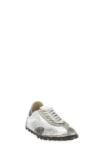 cod. S57WS0512P7451HB123 'Sprinters' vintage treatment nylon and suede sneakers, 'Numeric signature MM6' patch tongue, lace-up closure, contrasting leather heel with Maison Margiela signature stitching, rubber sole with cleats. Color: Silver Size & Fit: EU MEN Composition: 100% calfskin leather Made in: Italy