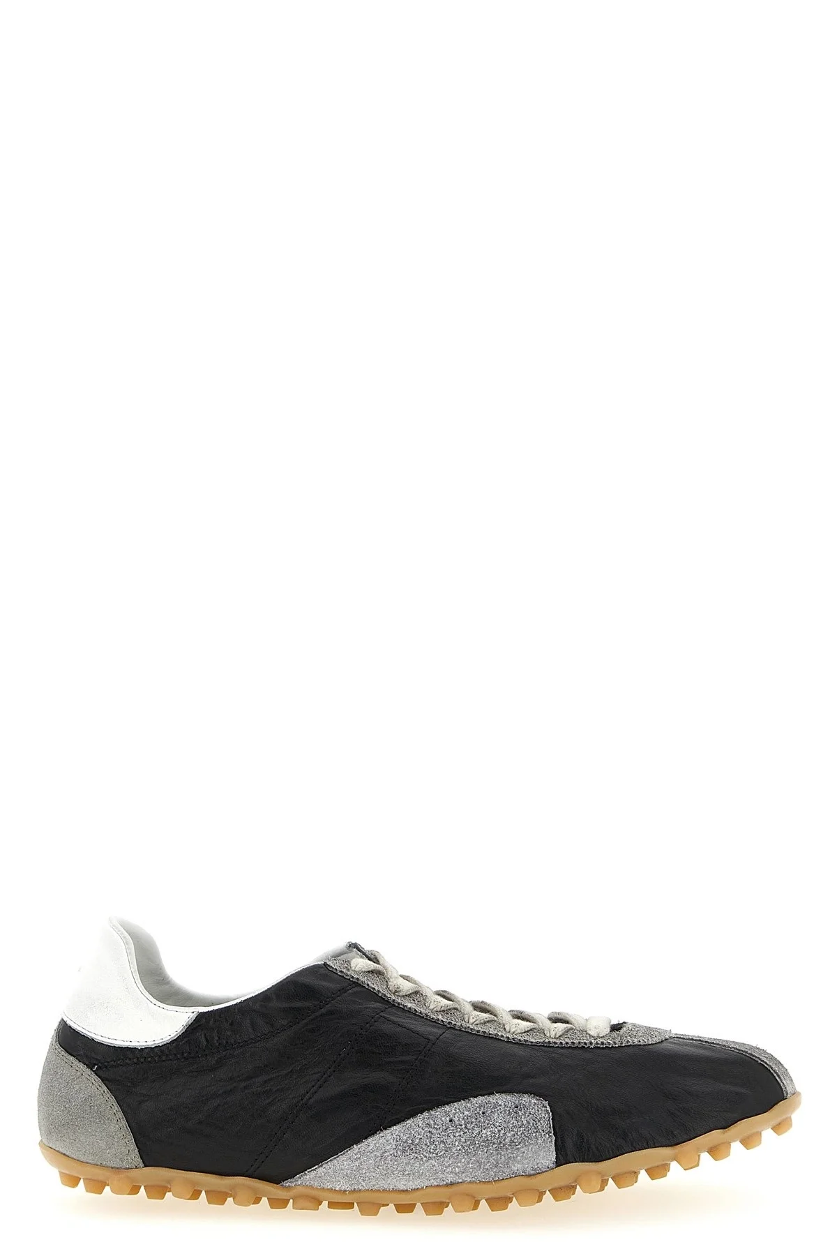 cod. S57WS0515P7383HA316 'Sprinters' long-haired suede sneakers with vintage treatment and calf leather, tongue with 'Numeric signature MM6' patch, lace-up closure, heel with characteristic Maison Margiela stitching, rubber sole with cleats. Color: Multicolor Size & Fit: EU MEN Composition: 100% goat cashmere (Capra Hircus Hircus) Made in: Italy