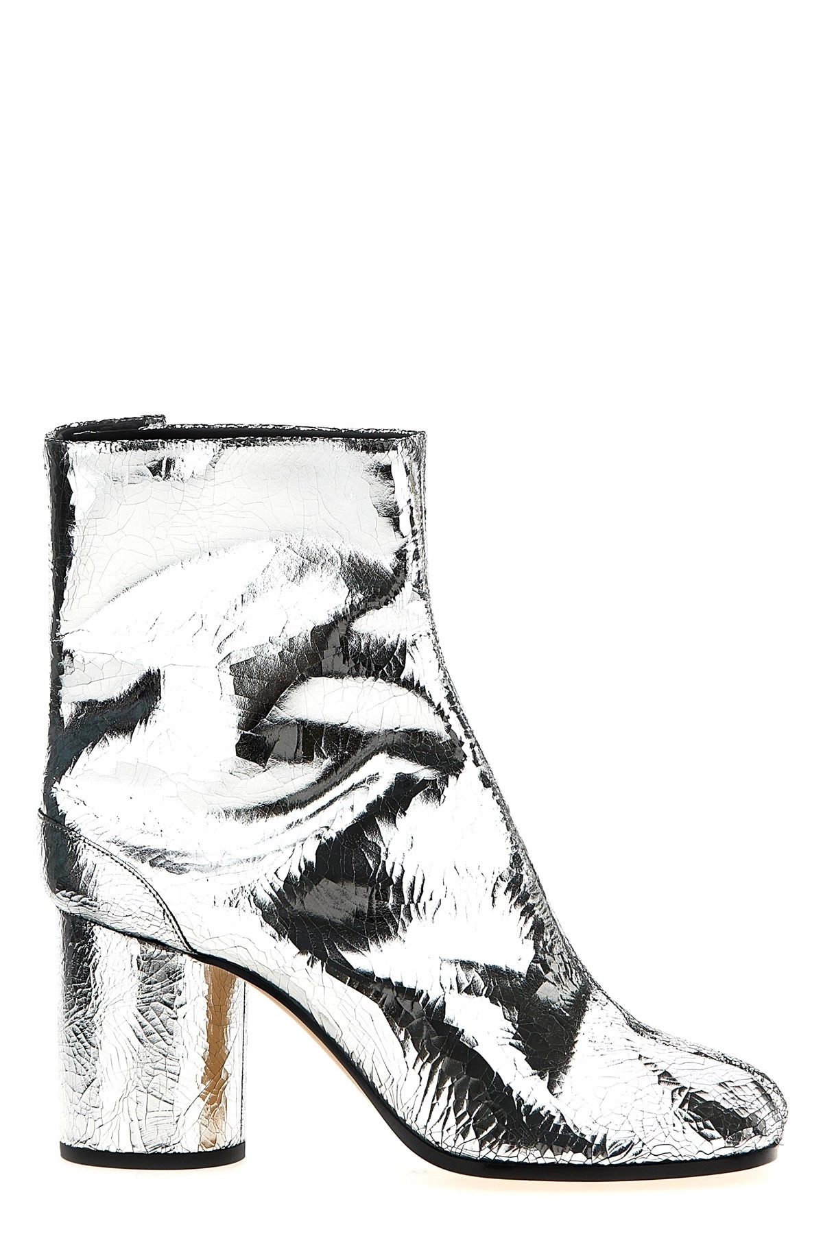 cod. S58WU0260P5016T9002 'Tabi' ankle boots in crack-effect metallic leather with leather sole. Slight imperfections and differences between one product and another are absolutely to be considered normal and guarantee of craftsmanship of the product. Color: Silver Size & Fit: EU WOMEN Heels: 8 cm Composition: 100% PBV