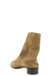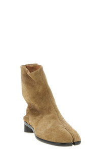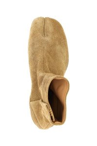 cod. S57WU0153P8270T2077 Suede ankle boots, 'Tabi' cut toe, side hook closure, characteristic Maison Margiela stitching at the back, cylindrical heel, leather sole. Color: Beige Size & Fit: EU MAN - Heel: 3 cm Composition: 100% calfskin leather Made in: Italy