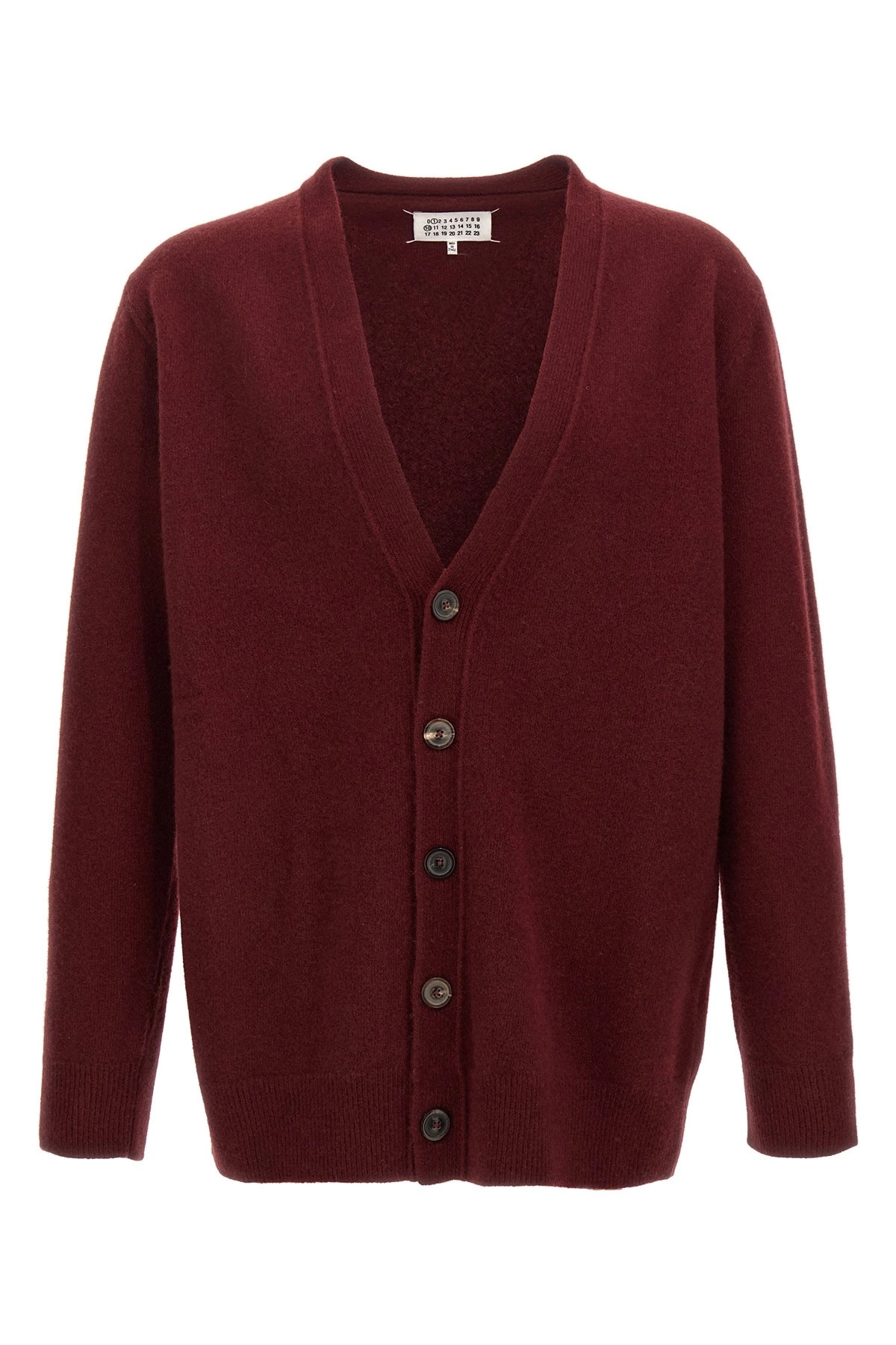 cod. S50HP0014M13058248 Wool cardigan with button closure, long cuffed sleeves. Color: Bordeaux Size & Fit: true to size fit Composition: 100% wool Made in: Italy