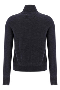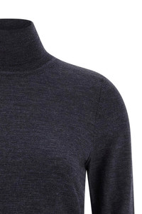 cod. S51HL0029M13147457 Fine wool melange turtleneck sweater, turned-up high neck, long cuffed sleeves, back 'Four stitches'. Color: Blue Size & Fit: true to size fit Composition: 100% wool Made in: Romania