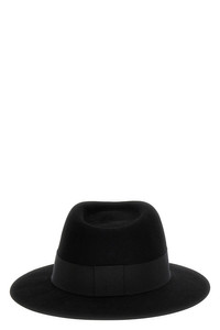 cod. 1003001001BLACK Andre' wool felt hat, fedora style with grosgrain ribbon and tone-on-tone metal logo. Color: Black Size & Fit: true to size fit Composition: 100% wool felt Made in: Spain