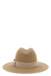 cod. 1114050002BEIGEONYX 'Zango' wool felt hat, fedora model with canvas ribbon and metal logo. Color: Beige Size & Fit: True to size fit Composition: 100% felt wool Made in: France