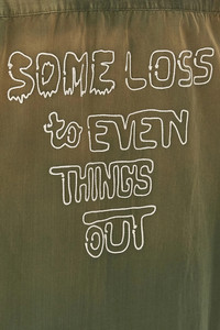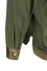 cod. J15SH183KHAKI Faded and discolored rayon and cotton blend shirt, embroidery on the front and back, pockets, patch and front button closure, long sleeves with cuffs and dropped shoulder, asymmetrical hem, side slits. Color, structure and specifications may vary slightly for each item due to differences in production time or the individual characteristics of each part. Color: Green Size & Fit: oversized fit Composition: 65% rayon, 35% cotton Made in: Japan