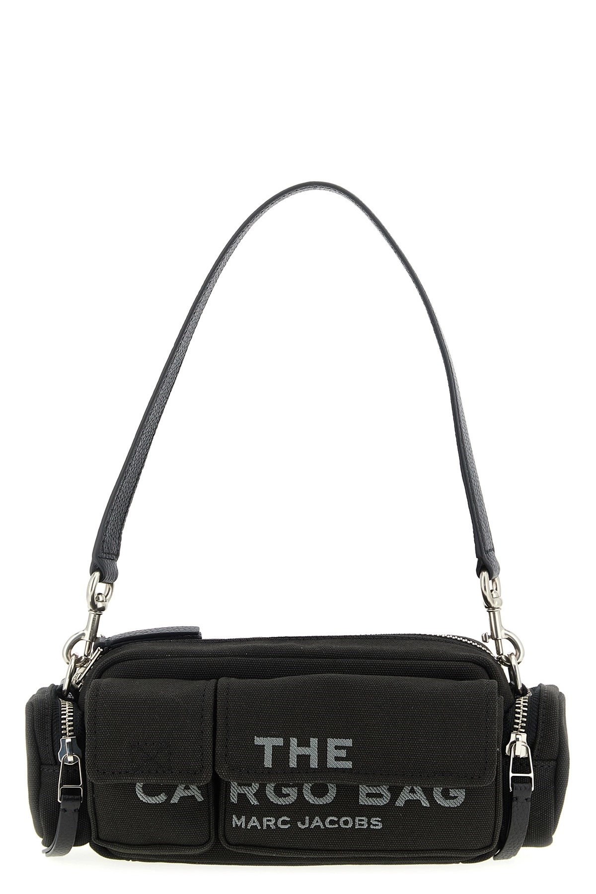 cod. 2P5HSH025H03001 'The Canvas Cargo' textured cotton canvas shoulder bag, front logo embroidery, cargo pockets, back grained leather logo patch, top zip closure, removable grained leather sleeves, adjustable and removable fabric shoulder strap. The canvas canvas is bound to fade and relax over time. Color: Black Size & Fit: W 22 x H 12 x D 7 cm Composition: 100% cotton Made in: Vietnam