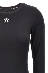 cod. WDR267ACJER0011BK99 'Moon Logo' ribbed cotton dress with front logo embroidery, crew neck, long sleeves. Color: Black Size & Fit: true to size fit Composition: 100% cotton Made in: Turkey PROMO CODE NOT APPLICABLE