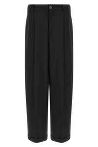 cod. PUMU0332U0UTW83900N99 Authentico® cool wool trousers, high waist, pins, stretched pleat, wide leg, low crotch, elastic back waistband, front zip and button closure, pockets, turn-up at the hem, viscose lining. Color: Black Size & Fit: true to size fit Composition: 100% virgin wool Made in: Italy