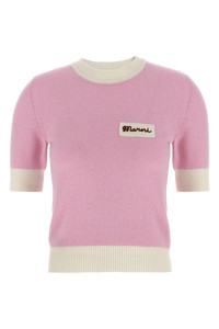 cod. GCMD0644EQUFH60200C13 Wool blend sweater with contrasting details, crop model, front logo embroidery, crew neck, short sleeves. Color: Pink Size & Fit: true to size fit Composition: 80% wool, 20% polyamide Made in: Romania