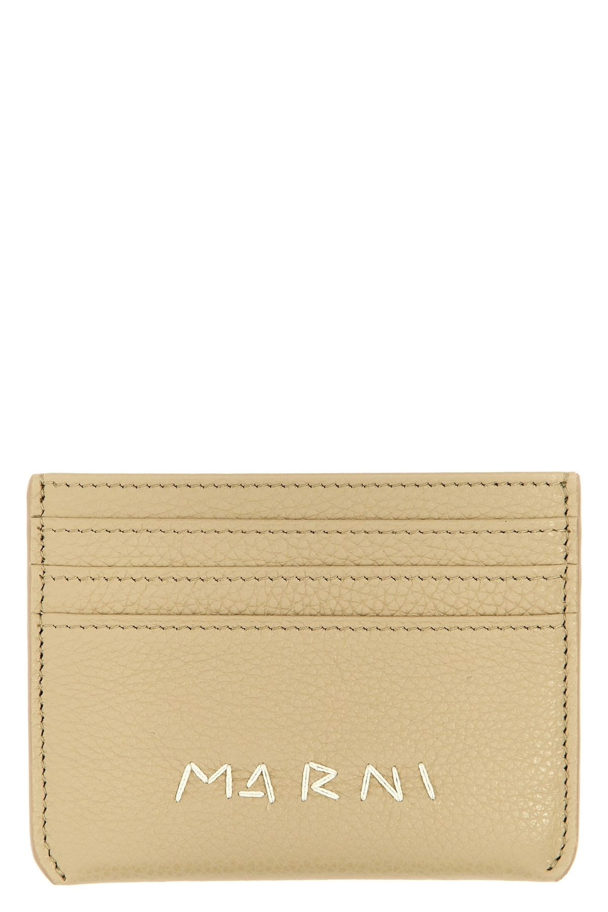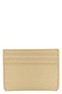 cod. PFMI0104U0P653300W74 Hammered leather card holder with front lettering logo and contrast stitching. Color: Beige Size & Fit: W 10 x H 8 cm Composition: 100% calfskin leather (Bos Taurus) Made in: Italy