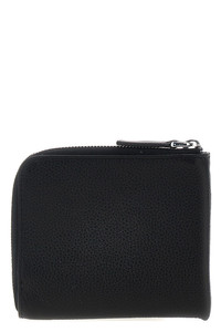 cod. PFMI0095Q0P653300N99 Hammered leather wallet, front lettering logo with contrasting stitching, and zipper closure. Color: Black Size & Fit: W 12 x H 10 cm Composition: 100% calfskin leather (Bos Taurus)