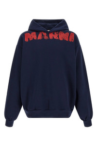 cod. FUMU0067PRUSCY36LOB95 'Marni Monolith' cotton jersey hoodie with front logo print, pockets, long cuffed sleeves and dropped shoulders. Color: Blue Size & Fit: oversized fit Composition: 100% cotton Made in: Albania